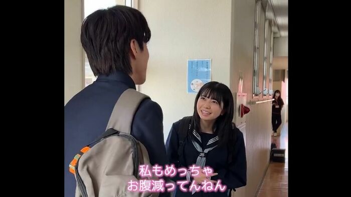 撮影の合間、河野さんが「めっちゃお腹減ってんねん」と言うと、桜田さんもお腹をおさえて「私もめっちゃお腹減ってんねん」と返します。