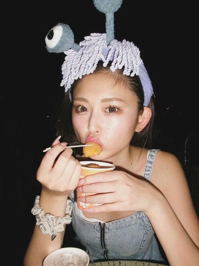 白のインナーにオフショルデニムを合わせたおそろいコーデで、姉・ゆうちゃみさんは『モンスターズ・インク』の「ブー」のかぶり物を、妹・ゆいちゃみさんは『トイ・ストーリー』の「エイリアン」のかぶり物をかぶっていました。