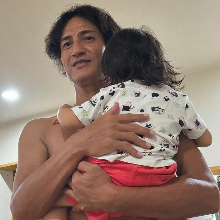 抱っこされた娘はべったりくっついていて、本並さんもうれしそうな表情をしています。