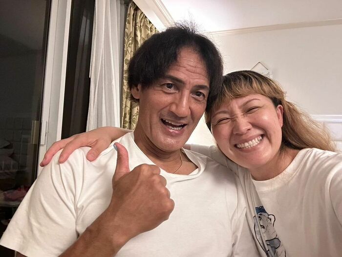公開された写真では、夫の本並さんと肩を組んで満面の笑みを見せる夫婦ショットを公開!