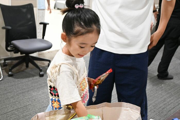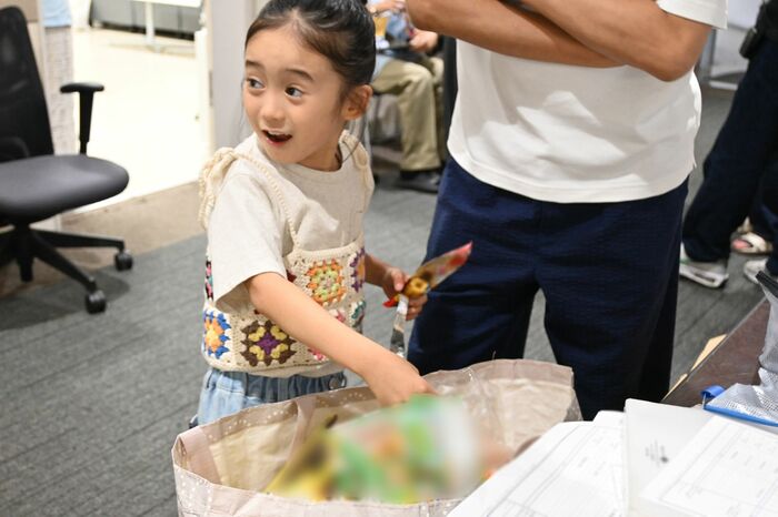 泉谷さんが「わぁ!」と目を輝かせると、利重さんは「全部、星奈ちゃんのかな?」とニッコリ。うれしそうにお菓子を眺めていた泉谷さんは、思い出したように「とっておきのがあるの!」と言って机の下にある別の箱を指しました。