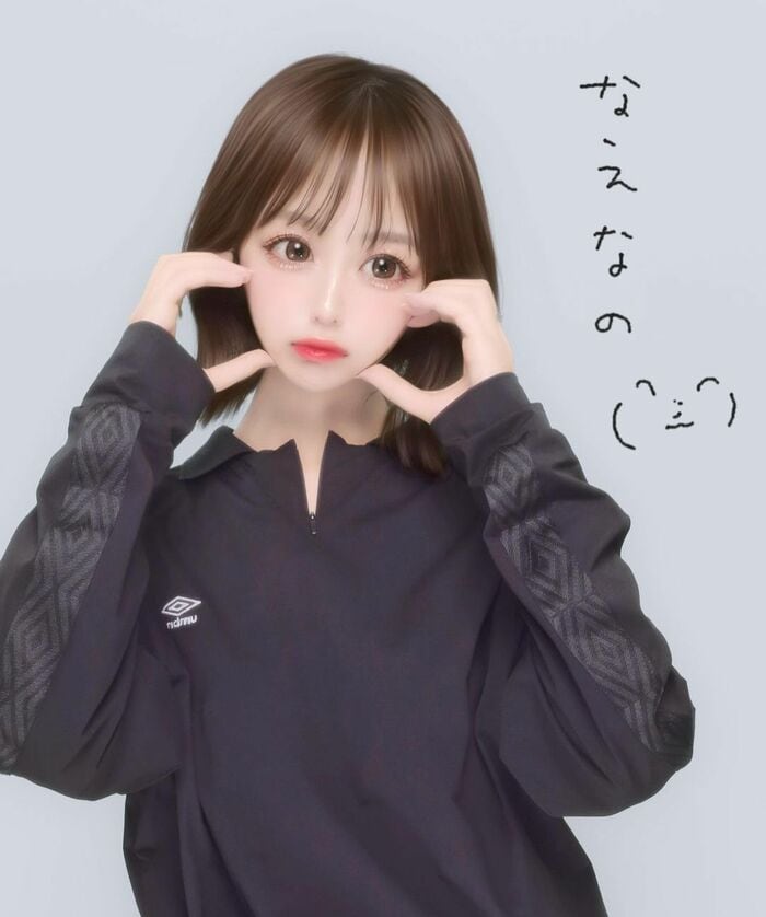 頬に手を当て、ボルハートをし「なえなの」と名前と手書きの顔文字を落書きしたショットや…
