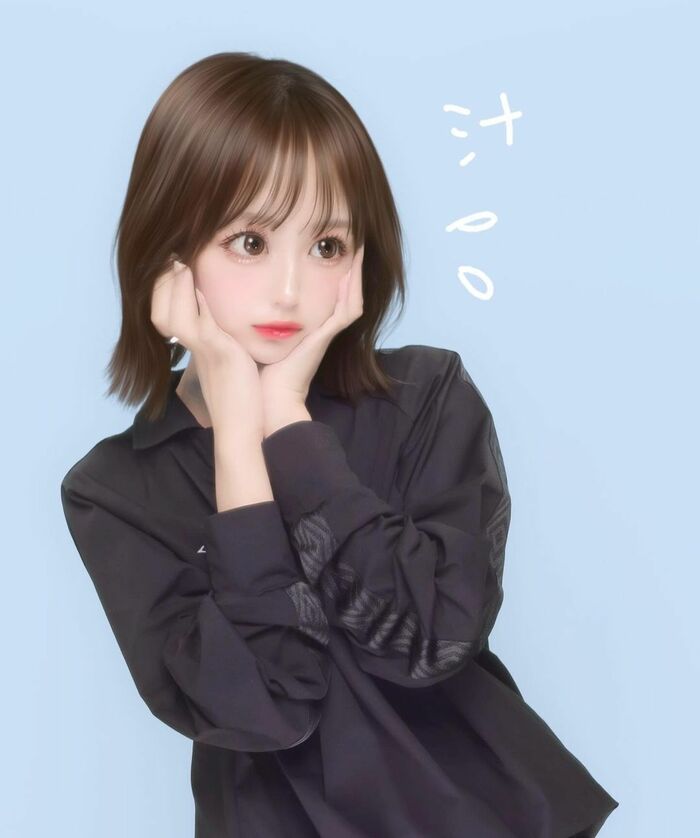 両手で頬を包み、上目遣いで視線を外すなえなのさんの姿の横に「汁」という文字が!
