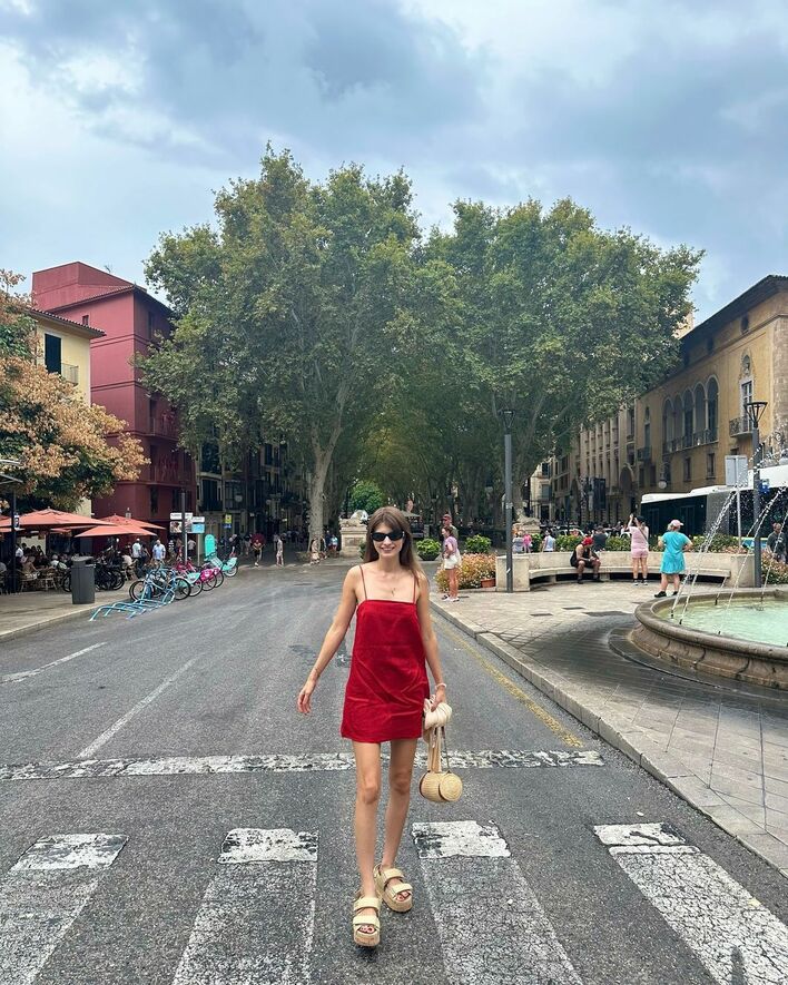 マギーさんは「マヨルカ探索!」というコメントとともに、仕事でスペインのマヨルカ島を訪れていることを明かし、胸元がざっくりと開き、スラッとした美脚があらわになった赤のキャミワンピ姿を公開。