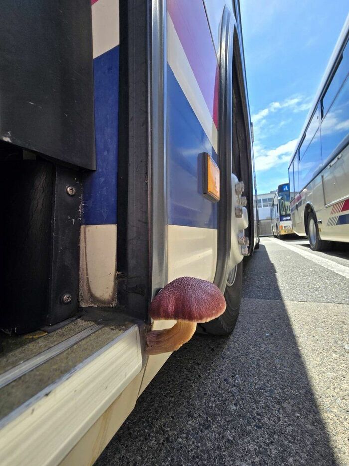 撮影されたバスは東京・八王子市、日野市を中心に走行。バスからキノコが生えることは頻繁にあるのか聞いてみると「自然豊かな多摩地域を走行しておりますので、ごくまれに生えることはあるのかもしれません。」と今回のような光景を見ることができるそう。
