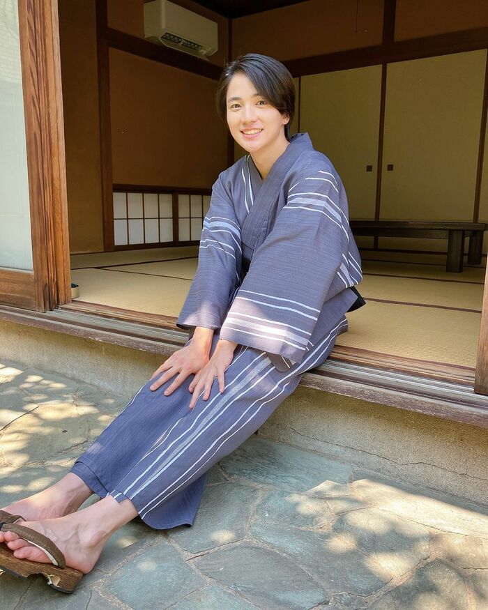 さらには古民家の軒下に腰掛け、涼しげな紺色の浴衣姿も披露!