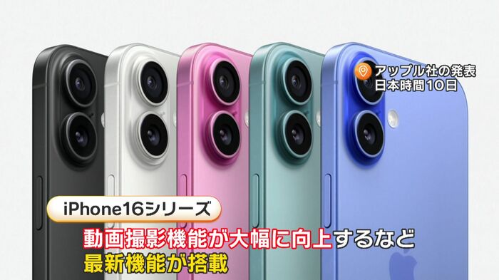 アメリカのアップル社から、動画撮影機能が大幅に向上するなどのさまざまな最新機能が搭載されたiPhone16シリーズが、日本時間2024年9月10日に発表。
