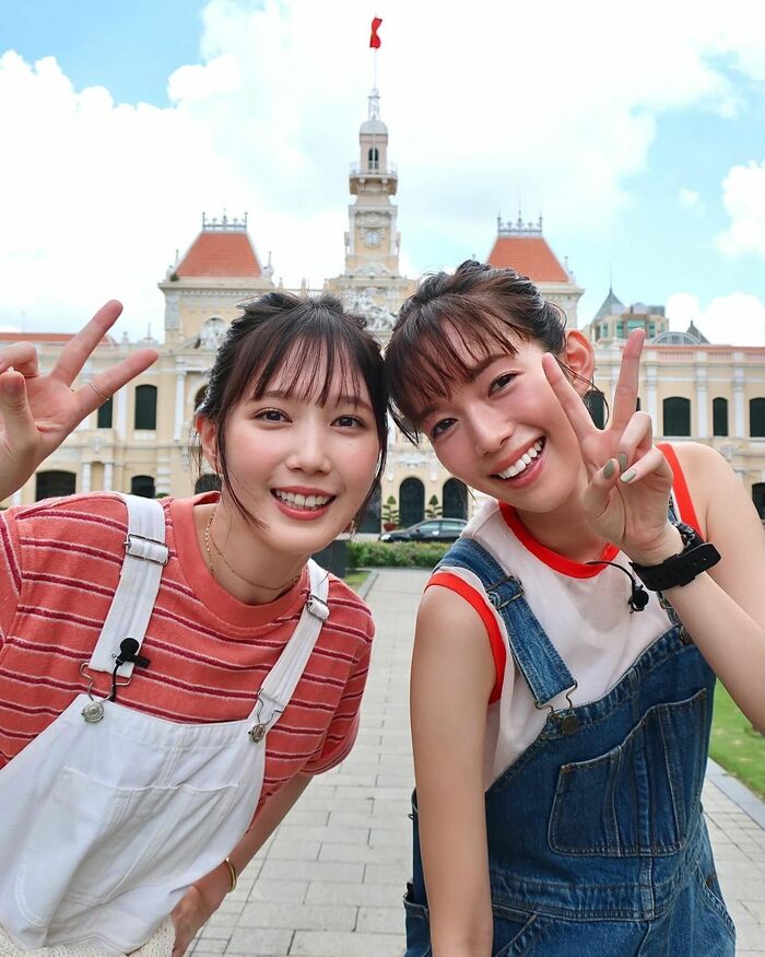 佐藤さんは「ばっさーとベトナムに旅をしてきました」とコメントし、女優の本田翼さんとベトナム旅行へ行ってきたことを報告。柄違いのサロペットを着た仲良しオフショットを公開しました。