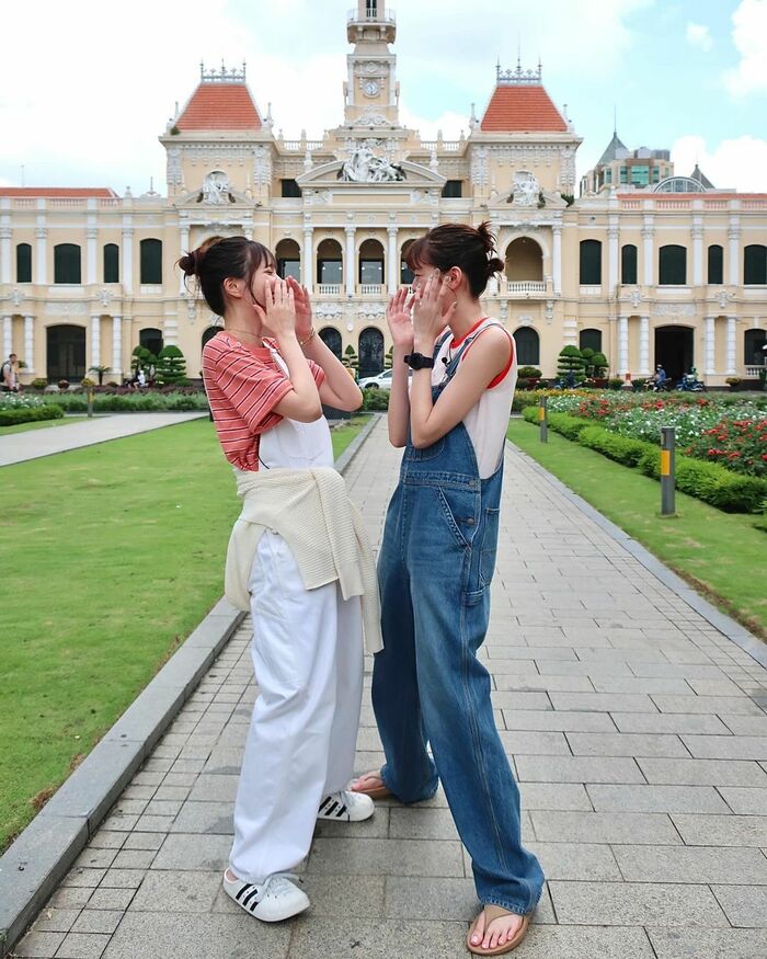 観光名所である、ホーチミン人民委員会庁舎の前で、顔を合わせて笑い合っている様子など!見ている方まで笑顔になれる幸せオーラがあふれています。