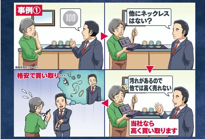「不要品の買い取り」をうたう業者が家を訪問し、高価な品物を半ば強引に安値で買いとる“押し買い”と呼ばれるトラブル。