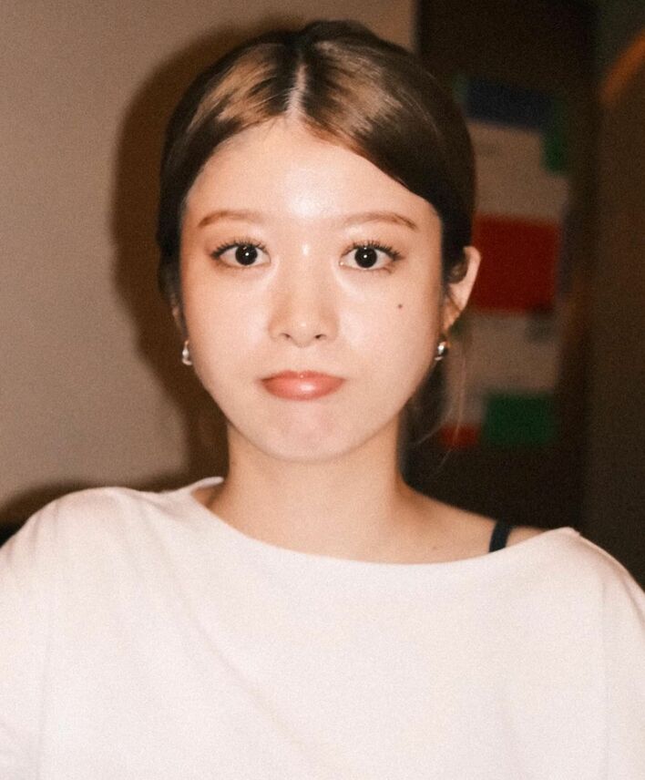 別の写真では、髪の毛を結んだ馬場さんが、下唇を見せた表情でじっとカメラを見つめる姿も。