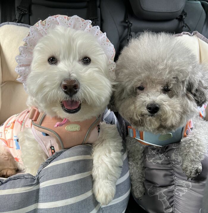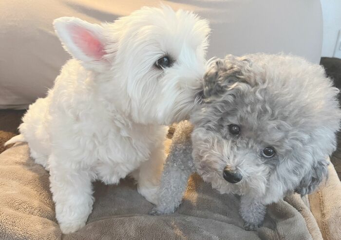 ある家庭で暮らすトイプードルの「ノーランくん」愛称「ノイちゃん」と、ウェスティの「ブレアちゃん」愛称「ブレちゃん」。
