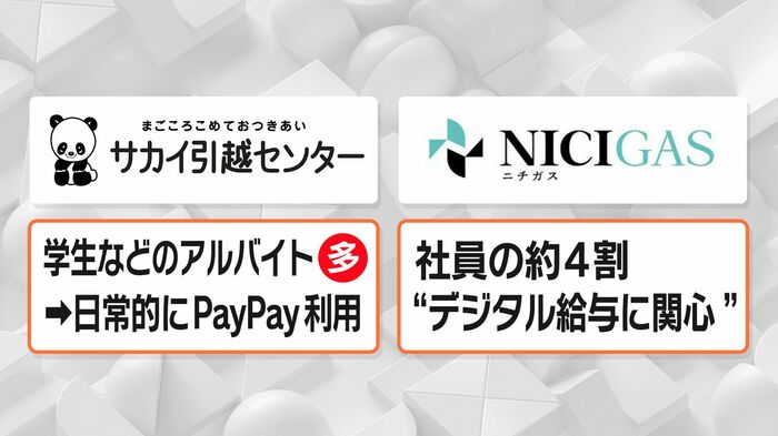 導入検討の理由としては、「サカイ引越センター」は学生をはじめとしたアルバイトが多く、日常的にPayPayを使っている人が多いためとしており、「ニチガス」は社内アンケートをとったところ、約4割がデジタル給与に関心があると回答したことから、導入を検討しているということで、どちらもできるだけ早いタイミングで導入したいとしています。