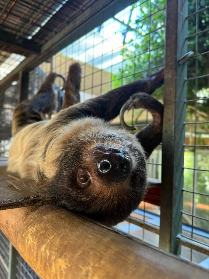 神戸市王子動物園で暮らす、フタユビナマケモノの「キンカン」。木にぶら下がりながら水分補給をする姿が「斬新!」と話題になっています。