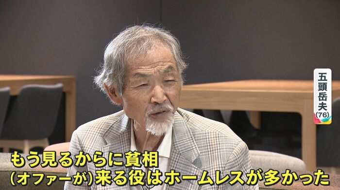 白髪まじりで、無精ひげのこのご老人。話題の配信ドラマ「地面師たち」に出演し、今遅咲きの大ブレイク中の五頭岳夫さん76歳です。