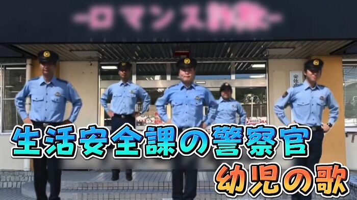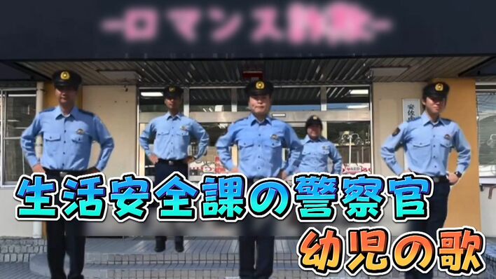 真面目な顔で踊る警察官。かわいらしい幼児の歌声にそぐわぬシュールな歌詞。
