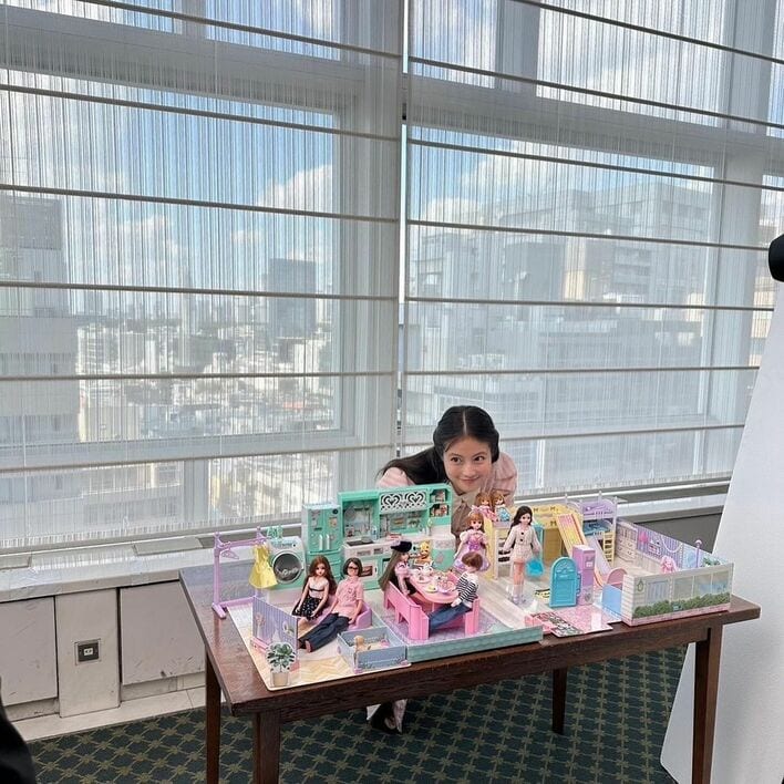 リカちゃんやリカちゃんのパパ、ママがいるお家に「みおちゃん」が遊びに来ている様子にそっと顔を寄せているショットを公開。