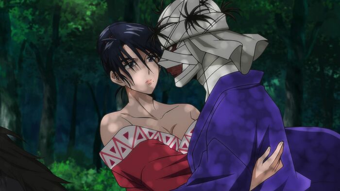 しかし、志々雄は不殺の戦い⽅にがっかりしたと⾔い、側近の瀬⽥宗次郎(cv.⼭下⼤輝)に剣⼼の相⼿を任せ、同じく側近の駒形由美(cv.⼾松遥)とその場をあとにする。