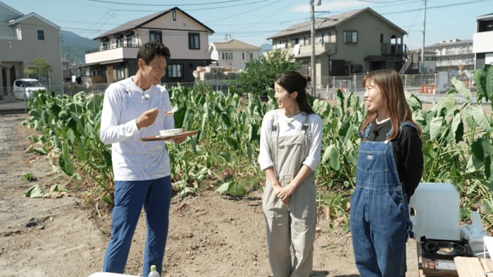 神奈川県小田原市の「太田農園」で、太田千遥さんに和風の里芋コロッケの作り方を教えてもらった松岡さんは、続いて妹の沙季さんから、自慢の里芋料理を紹介してもらうことに。