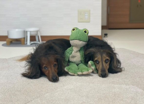 とある家庭で暮らす、カニンヘンダックスフンドの「かるむ」くん6歳と、「るのん」くん5歳。