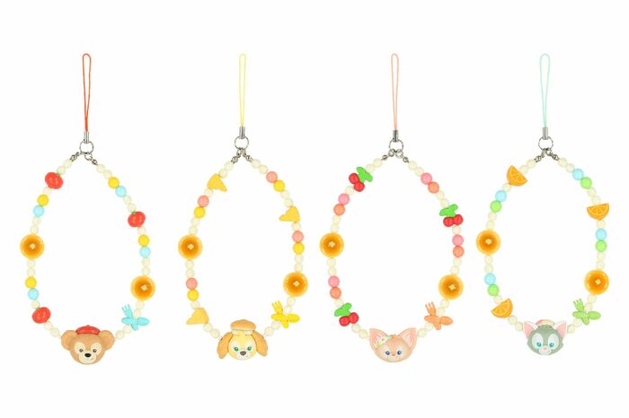 トマトやサクランボなどさまざまな食材に、ペロッと舌を出したダッフィーたちの顔が愛らしいストラップなどが登場します。