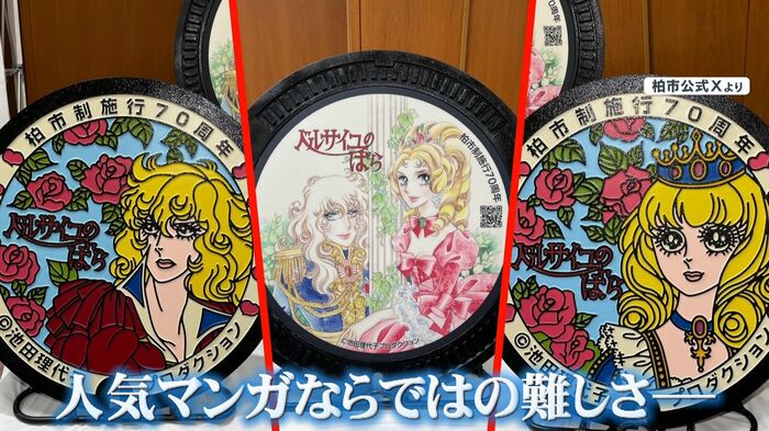 柏市制70周年を記念して、市内の3カ所に設置されたこのマンホール。作者の池田理代子さんが漫画の執筆当時、柏市内に住んでいたことが縁で実現したということです。
