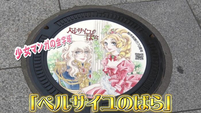 その足下にあるのは「ベルサイユのばら」のイラストが描かれたマンホールです。