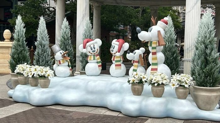ミッキーやミニーたちが雪だるまにふんしたフォトスポットや爽やかなブルーカラーの飾りが特徴的なツリーなども登場しているので、記念撮影にぴったりですね。