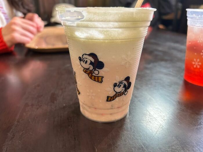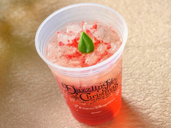 フードに合わせて味わいたいのがスペシャルなドリンク!ドリンクの赤とトッピングの緑でクリスマスの色合いをイメージしており、上に乗ったつぶつぶがアクセントになっています。