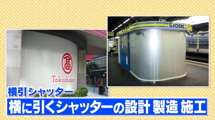 駅の売店や百貨店などにある、横に引くシャッターの設計、製造、施工まで行っています。