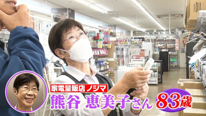 家電量販店に勤務する熊谷恵美子さん、83歳。