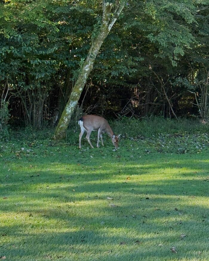 「#借りてみたら見つけたのは可愛いお客さん」と写真には鹿の姿が!なんともかわいらしい光景です。