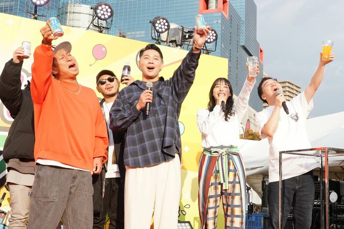 円さんが作詞作曲したオリジナルソング『みんなで乾杯!』で来場者と乾杯し、会場は熱気に包まれました。