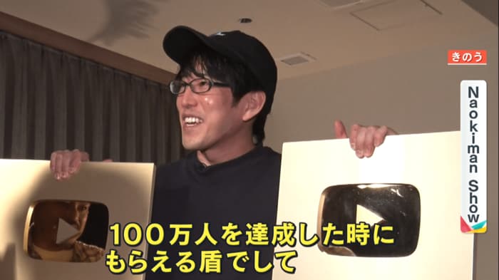 (こちらは)100万人を達成したときにもらえる盾でして~。