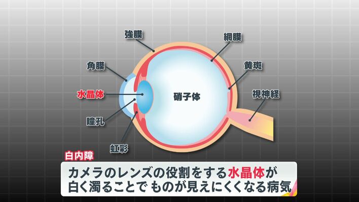 白内障は、眼の中で、カメラのレンズの役割をしている水晶体が白く濁ることで、目が見えにくくなる病気です。塚地さんは、数カ月前から右眼に白内障の症状があったといいます。