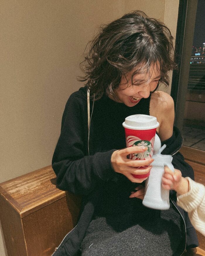 公開された写真では、黒のワンピースに羽織ったジャケットを少しずらし、肩だしを披露した河北さん。スターバックスコーヒーのカップを持ち、これから飲むような瞬間を見せています。