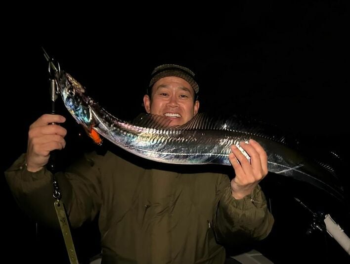 宮川さんの身長ほどの長さのある太刀魚のような魚を持ち、どこか誇らしげな顔でカメラに目線を送る姿などが公開されています。