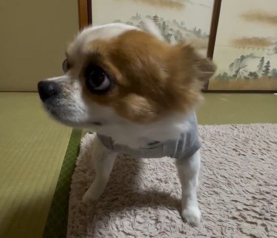そして、喜怒哀楽の表現が豊かな「そら」くんは、お着替えが苦手なようで、飼い主に上着を着せてもらっている間は、何か文句を言いたげな表情を見せていますが…