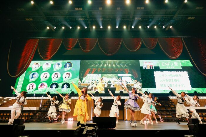 ESFP(エンターテイナー型)の6名が超ときめき♡宣伝部の『LOVEイヤイヤ期』を披露して会場を盛り上げるのをかわきりに、INFP(仲介者型)がいぎなり東北産の『服を着て、恋をしたい』をパフォーマンス。