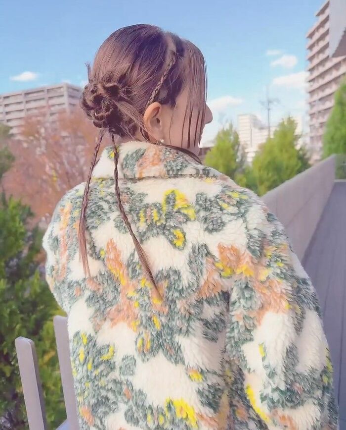 さらに、後ろ姿を捉えた動画では、髪の毛を編み込みのお団子にして毛先を少し残した「カチモリヘア」にしていることが分かります!