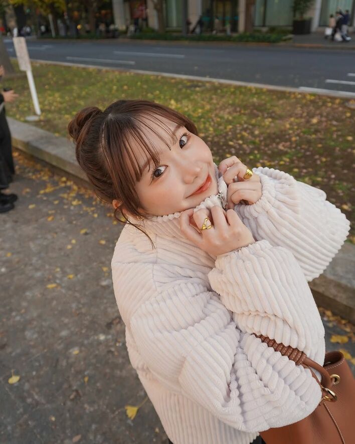 そんなきりまるさんは「夕方からデートした日」とつづり、彼氏とデートで映画を見に行ったことを報告。イチョウの木をバックに、お団子ヘアで温かそうなもこもこアウターに黒のスカートを合わせたコーデのオフショットを公開しました。
