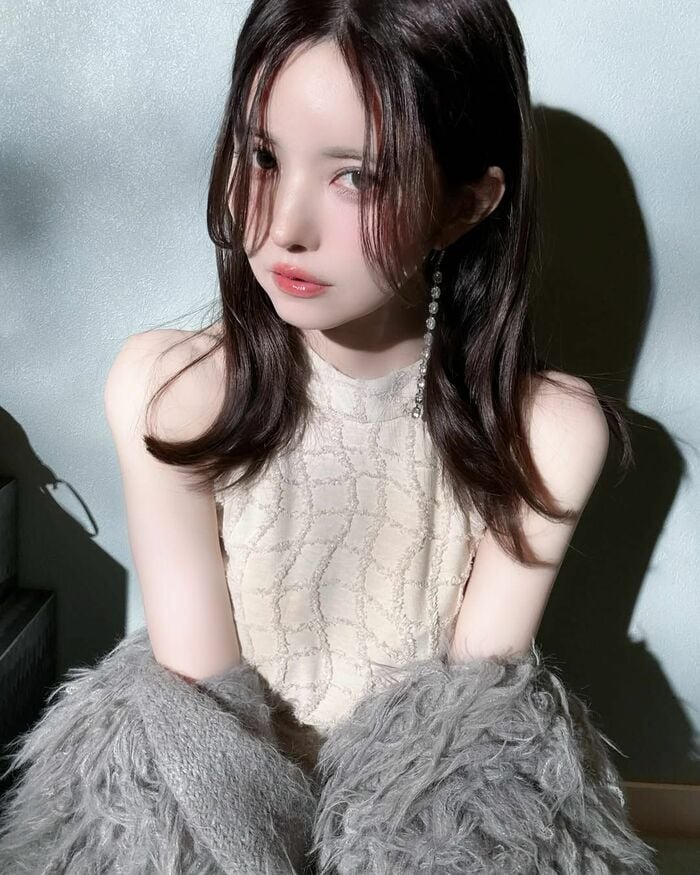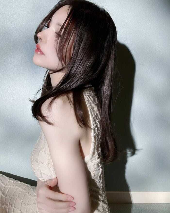 公開された写真には、ノースリーブの白ニットを着た、暗髪に、胸上ほどのミディアムロングで外はねにした姿が。