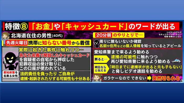 【特徴8のケース】「キャッシュカードが押収された」「金融犯罪」