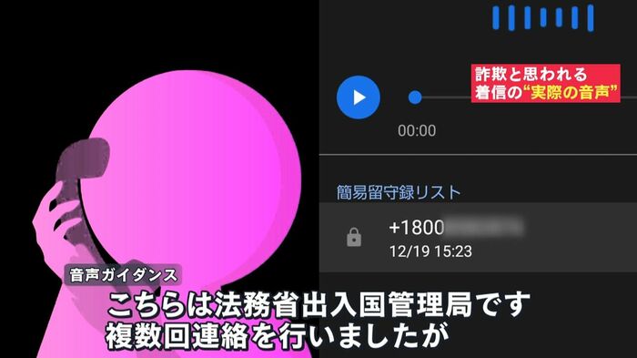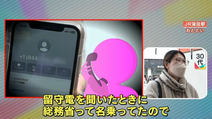 さらに、12月20日に“総務省”を名乗る自動音声の留守番電話が残っていたという女性に、残されていたメッセージを聞かせてもらうと…。
