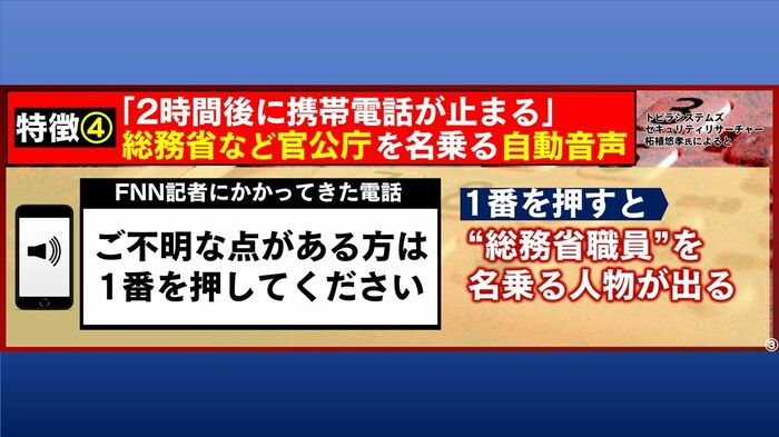 FNNの記者の元に、「総務省管理室」と名乗る自動音声がかかってきたケースも。