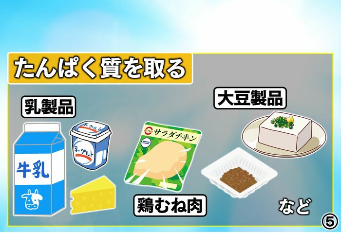 また、たんぱく質を取ることも大事です。牛乳を飲んだり、鶏むね肉、大豆製品をとるとセロトニンの材料になりますので。