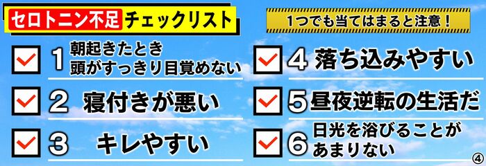 セロトニン不足のチェックリスト、1つでも当てはまると注意です!