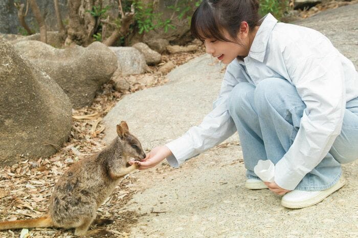 大阪府の“池田市ウォンバット応援大使”を務める与田さん。「ウォンバットの故郷に行ってみたい」という夢を叶えるため訪れた、オーストラリア・ケアンズの世界遺産の中にある自然豊かな動物園のシーンでは、動物を愛する与田さんならではの距離感で触れ合う、ほほ笑ましさにあふれるカットが盛りだくさんです。