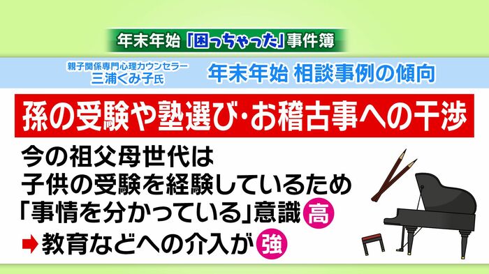 親子関係心理カウンセラーの三浦くみ子氏によると、最近の祖父母は自分の子どもを受験させている人が多いので、孫の教育に介入してくるケースも増えているといいます。