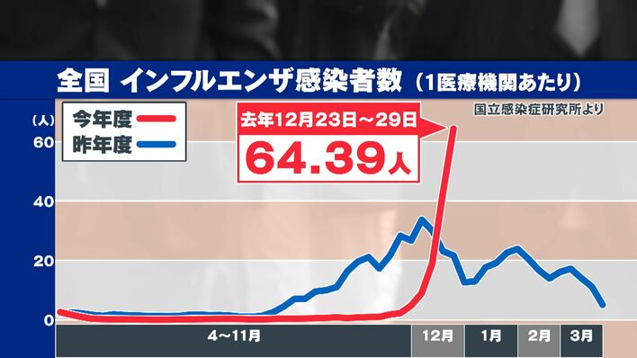 しかし今季は増加した外国人観光客が海外から持ち込み、2024年11月から流行期入りし、年末帰省での“家庭内感染”などによって年末にかけて急増しています。